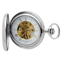 Buying Charles-Hubert, Paris Sterling Silver Two-Tone Mechanical Pocket Watch. Mechanical movement, Dress pocket watch, Gold-tone hands & Roman numerals, Sterling silver, Skeleton dial, Push down crown to open Skeleton dial with